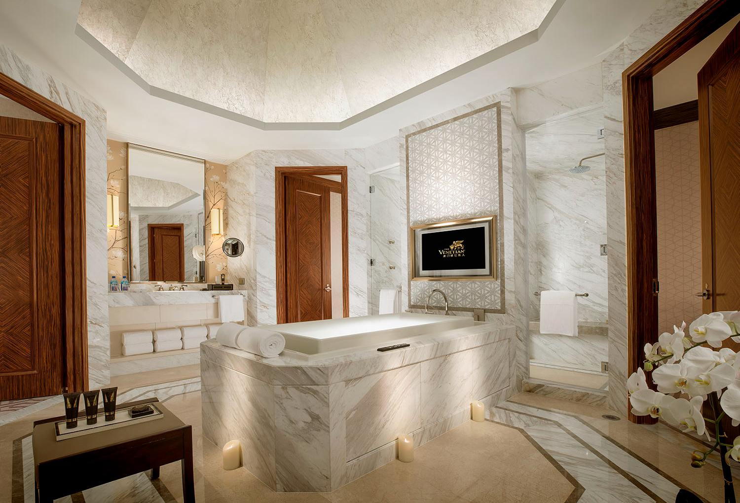 - 豪華大理石浴室設有獨立浴缸及淋浴區