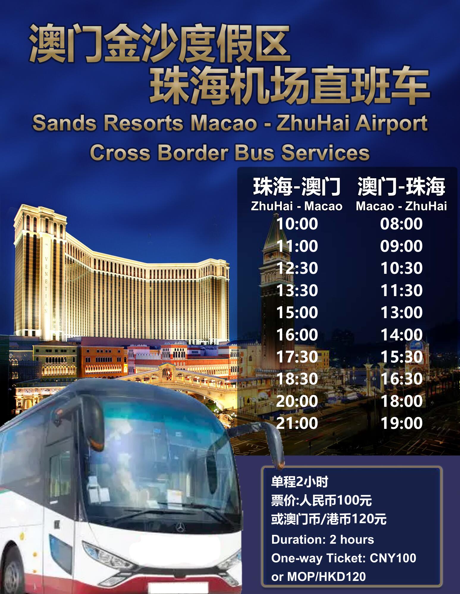 • 上車地点:珠海機場或澳门威尼斯人東門大堂